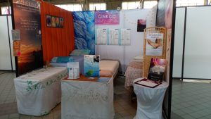 Trois jours de salon durant lesquels, accompagné de Catherine et Aurore (voir site en page contact), nous avons mis en place le stand de l’association GINKGO, expliqué son but et présenté nos techniques de bien-être. Aux sons enchanteurs des bols de Catherine, nous avons prodigué des soins à pas moins d’une cinquantaine de personnes, qui repartaient heureuses, souriantes et surprises des effets bienfaisants de nos pratiques.